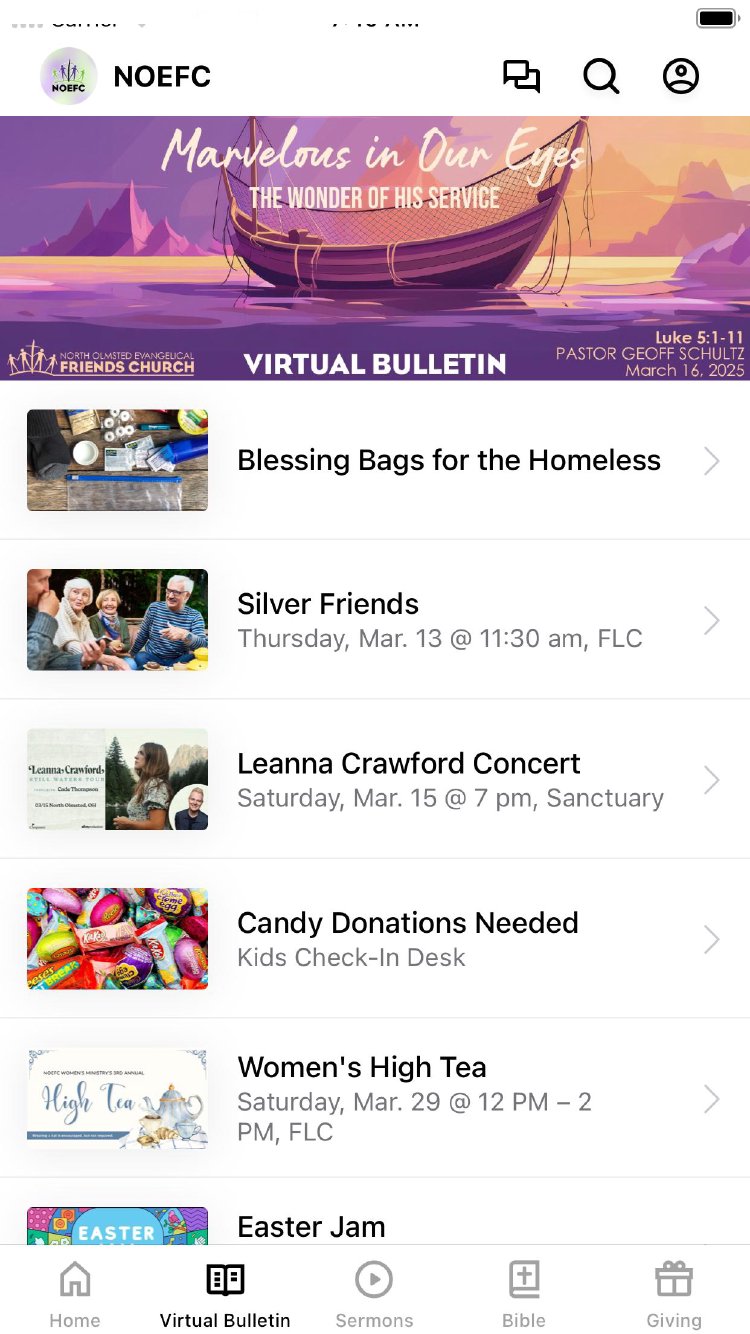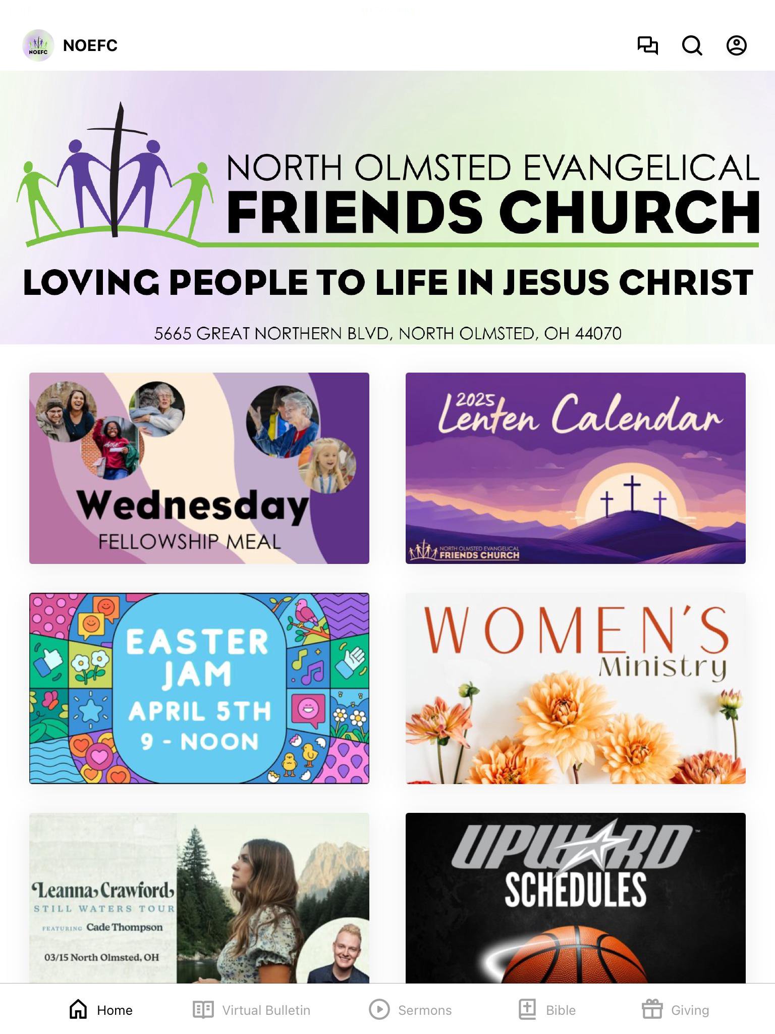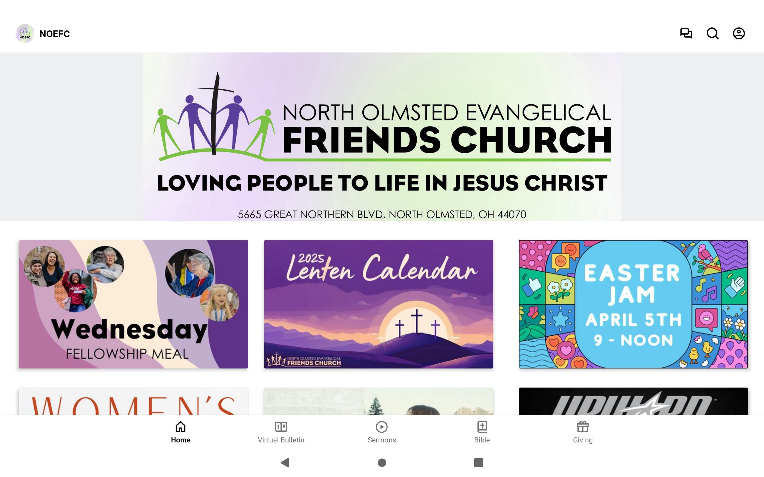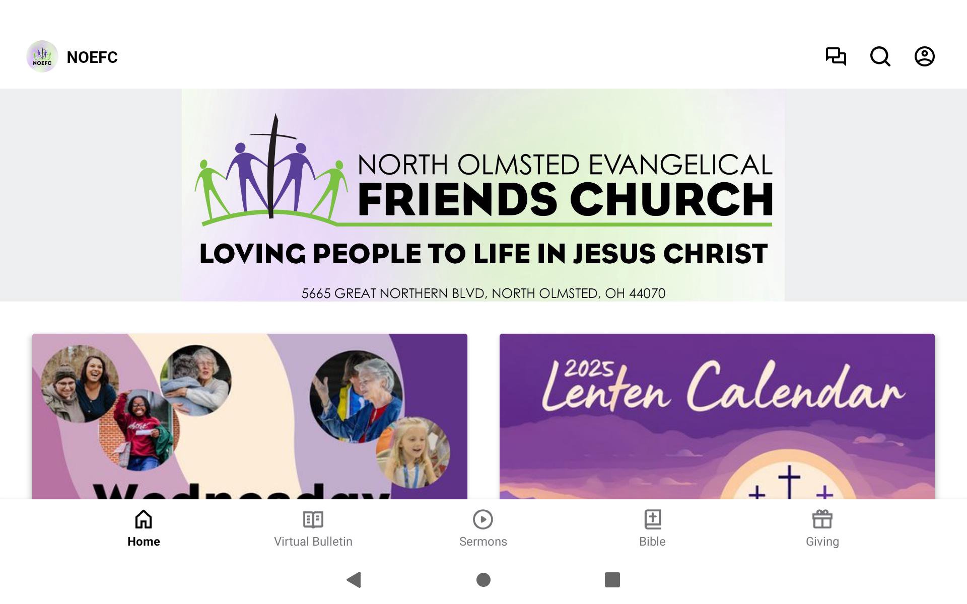 Download this app to grow and stay connected with NOEFC. With this app you can: - View our sermon library - Tune into a live stream when available - Read or listen to the Bible - Check out the virtual bulletin - Give donations securely - See and register for upcoming events - Join our messaging group