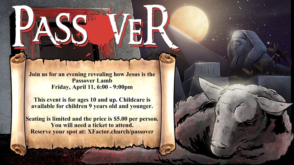 Join us for an evening revealing how Jesus is the Passover lamb.