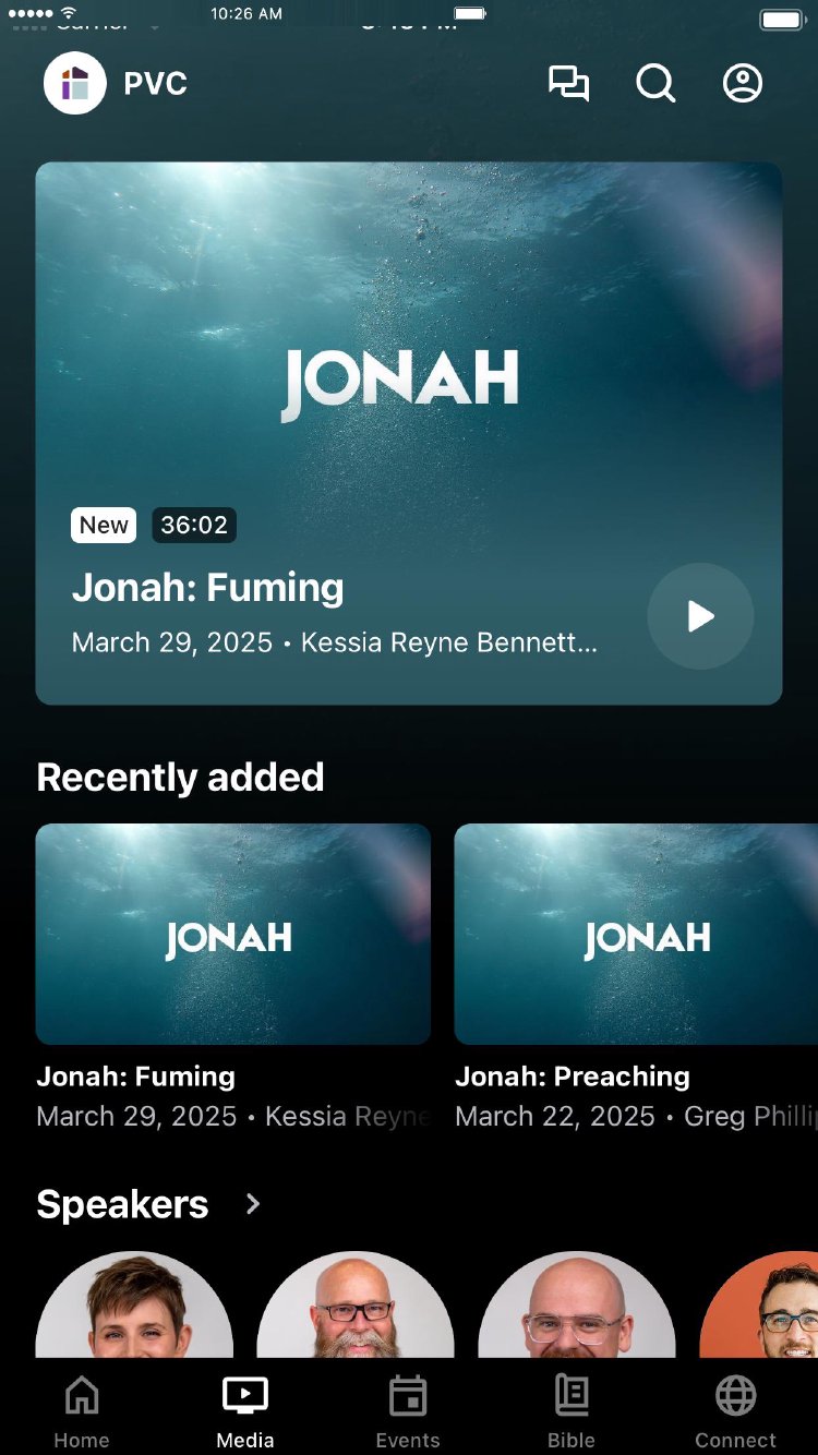 This is the place to connect with PVC events, media, and information. You can watch previous messages and testimonies, RSVP for events, sign up to volunteer, find out what's going on this week, and get notifications for the ministries most relevant to you.