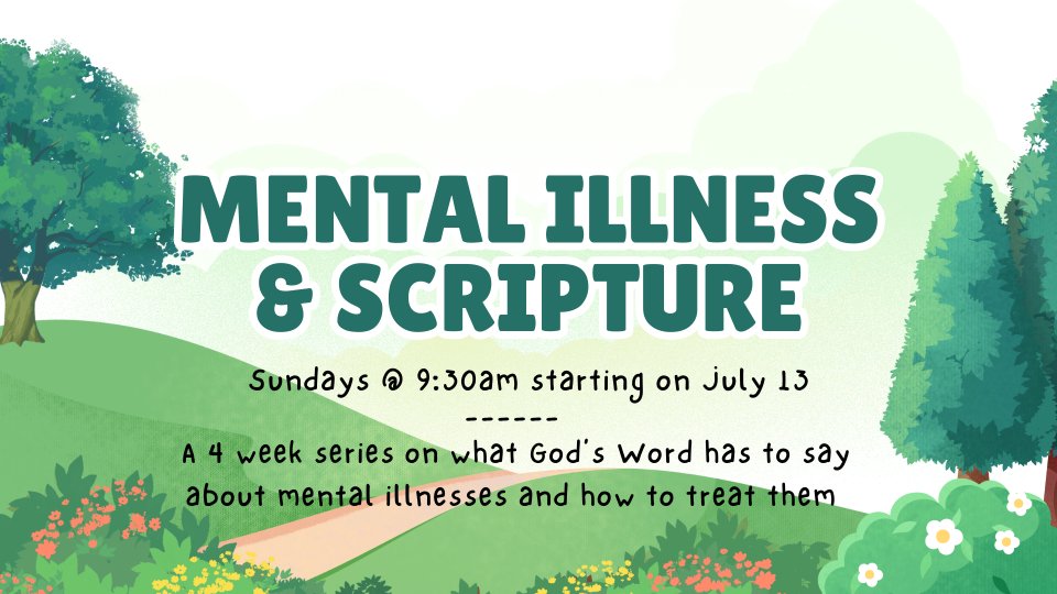 Join us for the final class of our 4-week series- in the Youth Portable, Sundays at 9:30 AM. Sierra Trotter will guide us through what God’s Word says about mental illness and how to respond with faith and care.