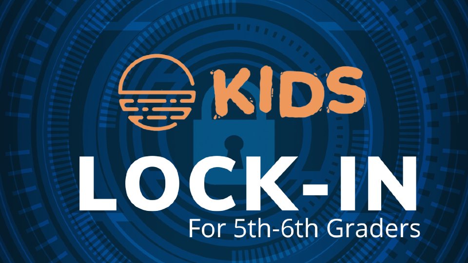 We're getting locked in! This event is for regularly attending Jubilee 5th-6th grade students on June 6th from 7 PM to June 7th at 8 AM. Pack your comfy clothes, favorite board game, sleep items, and a snack to share! It's sure to be an awesome night!