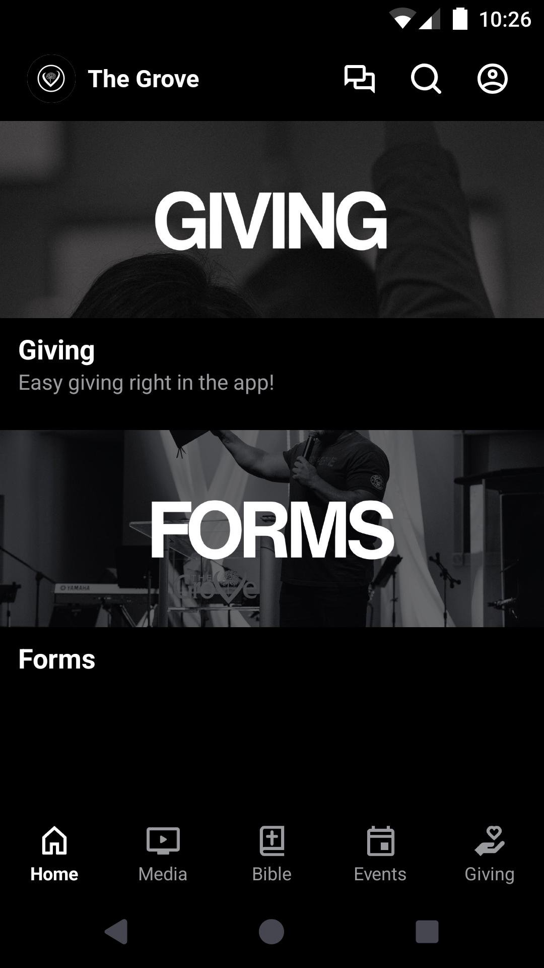 This app will help you stay connected to everything going on at The Grove Church! With our app you can view our calendar, watch previous messages and a livestream when available, give online, and so much more. Download our app today to stay connected.