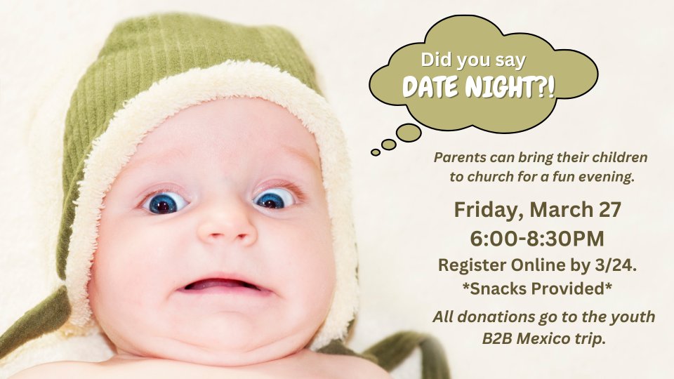 PPC Student Ministry Back2Back team is hosting a fundraiser for their mission trip to Mexico this summer. Parents can bring their children (ages 6 months - 12 years) to the church for a fun evening of planned activities from 6-8:30 pm.