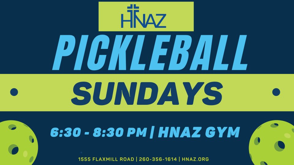 Pickleball happens every Sunday at 6:30pm in the HNaz gym. All abilities and ages are welcome!