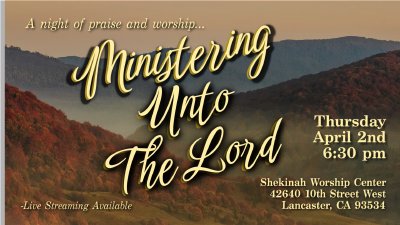 Thursday, April 2, 2026 at 6:30 PM we will gather for a special evening of music, praise, and worship as we minister to the Lord. "But the hour is coming, and now is, when the true worshipers will worship the Father in spirit and truth; for the Father is seeking such to worship Him." — John 4:23