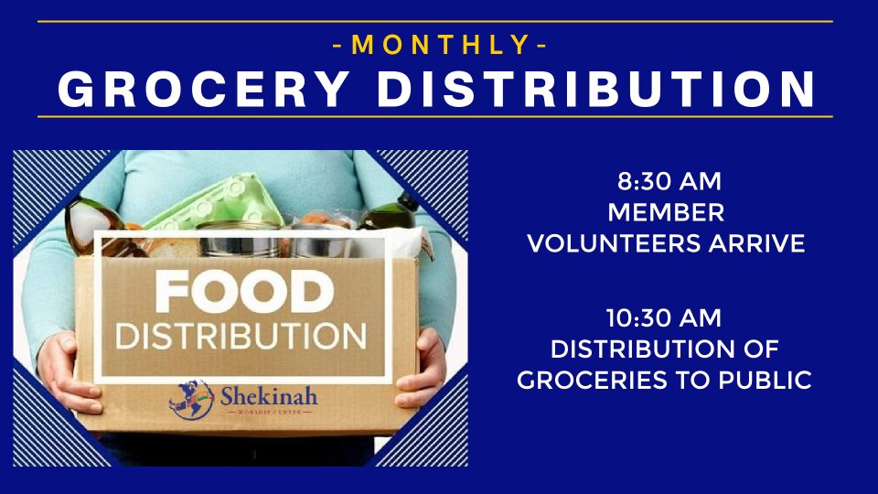 This month's Food Distribution will be on SATURDAY, MARCH 28TH.