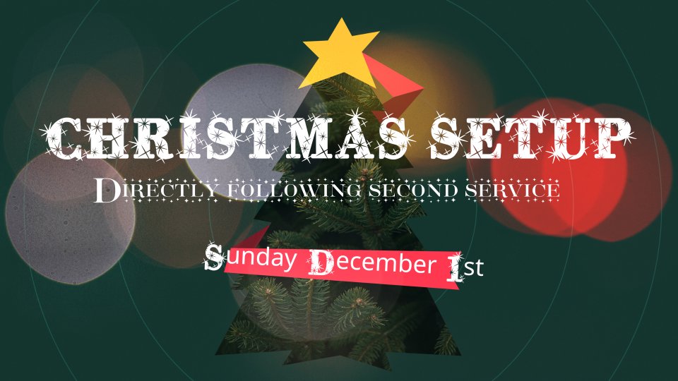Directly following second service on Sunday December 1st, we will be getting our church building all set up for Christmas. We will be decorating our lobby, putting together the set design for the stage, decorating the Children's Ministry areas, and more.