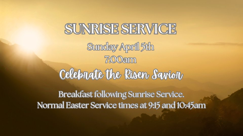 Normal Easter Sunday Services are at 9:15am and 10:45am in the auditorium.