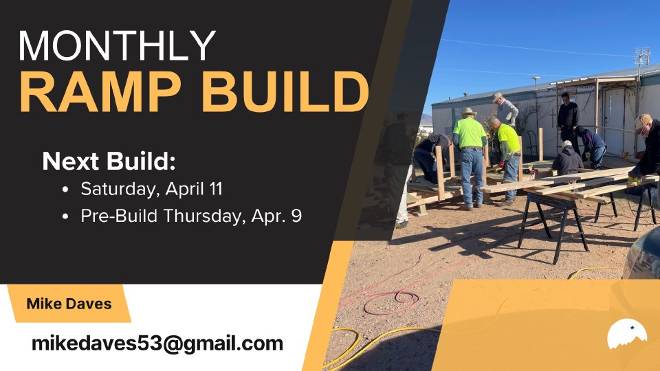 The Ramp Team has been constructing ramps in the Las Cruces area for more than a decade and has been part of the NM Ramp Project since the very beginning of the Project. The dates and locations of the ramp are shared with the team a week or more before the build takes place. Preparations are made and pre-constructed modules are assembled on the Thursday before each ramp build.