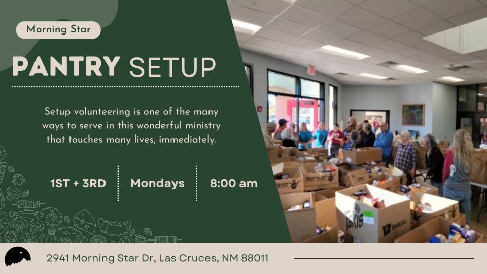 Morning Star's Food Pantry serves families in need in Doña Ana County on the First & Third Tuesday of each month by providing emergency and supplemental food regardless of need.