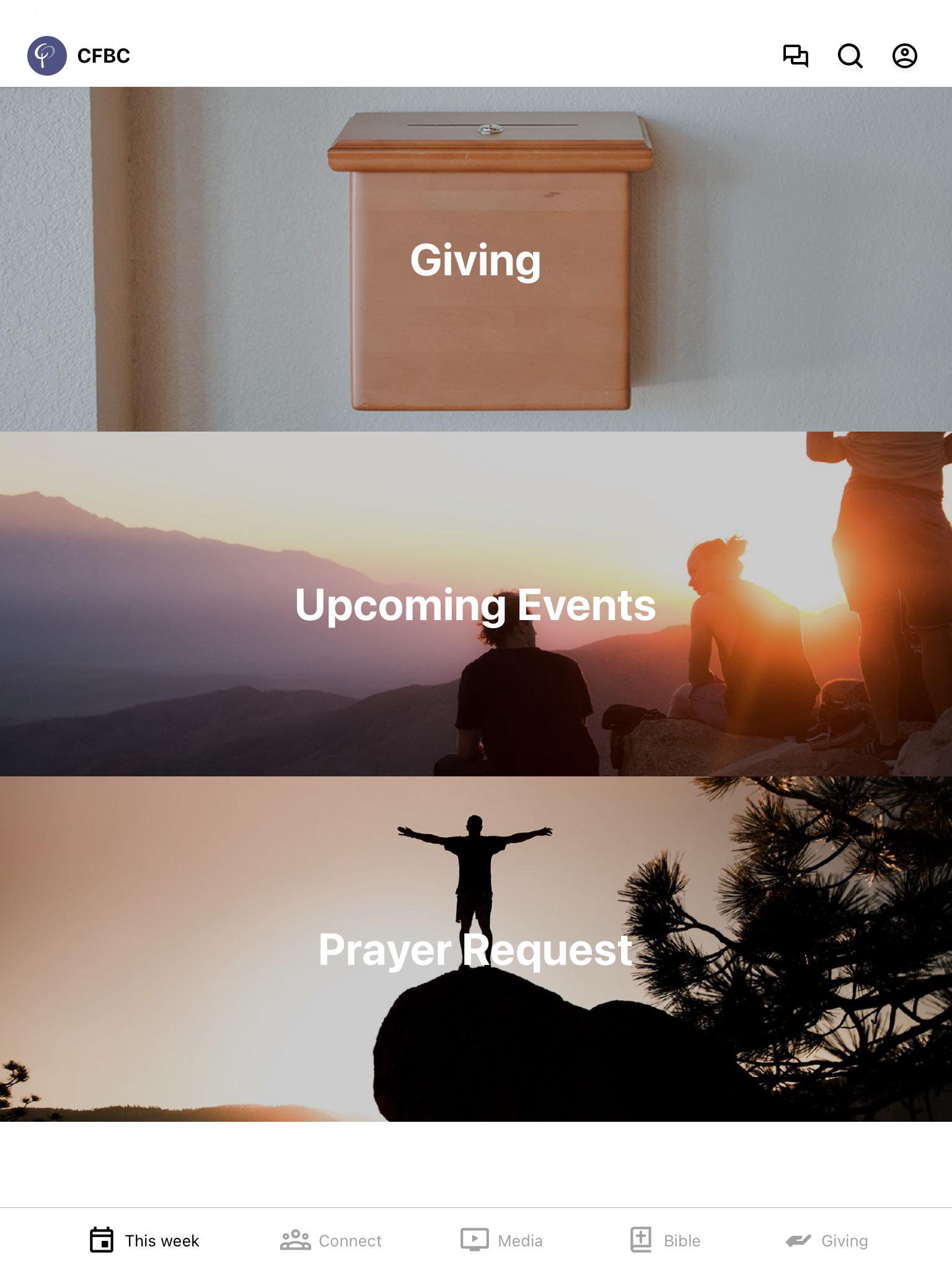 This app will allow you to stay connected to the community of Cleveland First Baptist Church. This app lets you watch previous sermons, see our upcoming events, and give to the church.
