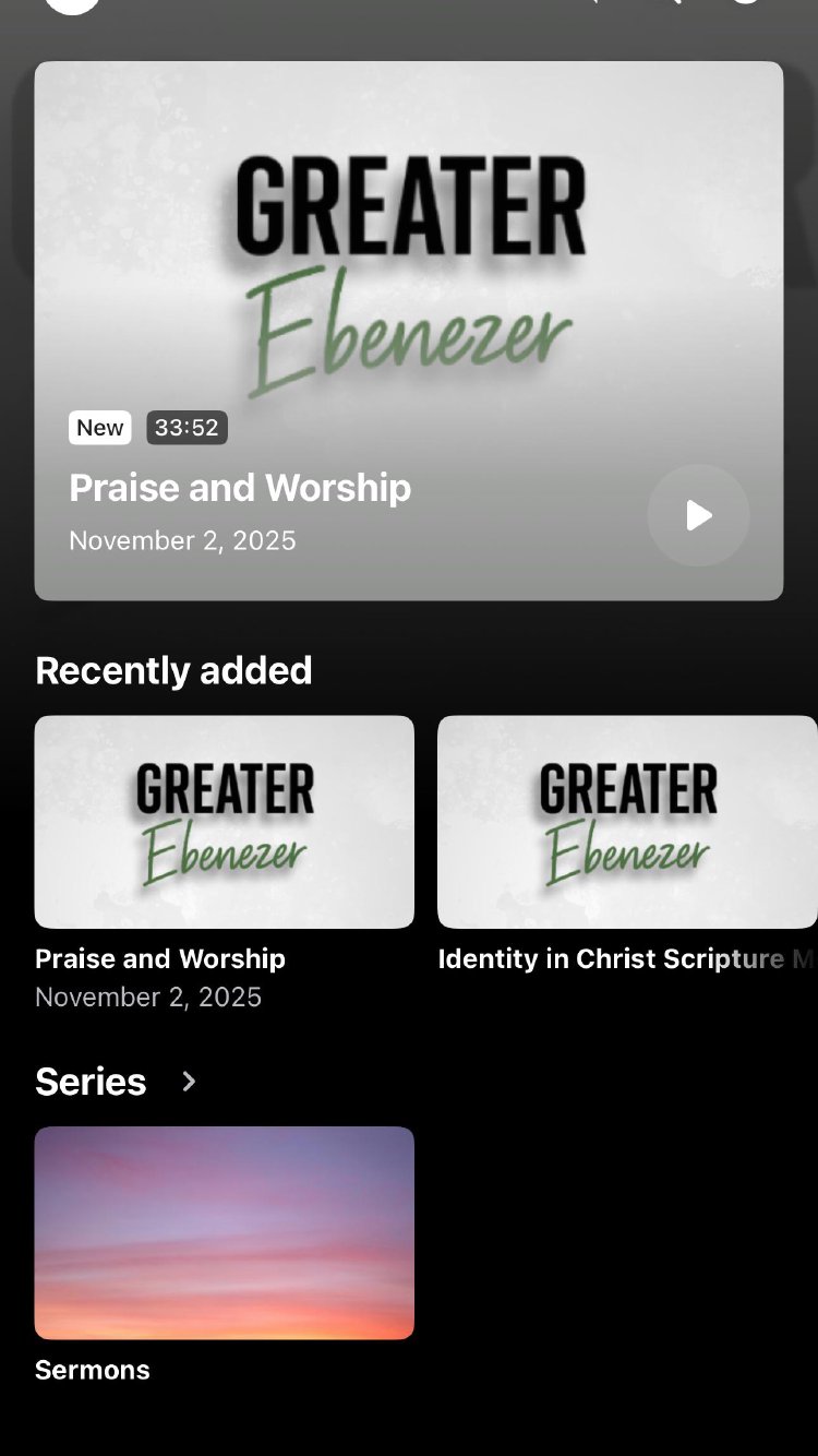 This app is where you can: - Watch or listen to Greater Ebenezer messages - Stay up-to-date and sign-up for upcoming events - Download messages for offline listening - Make a secure gift