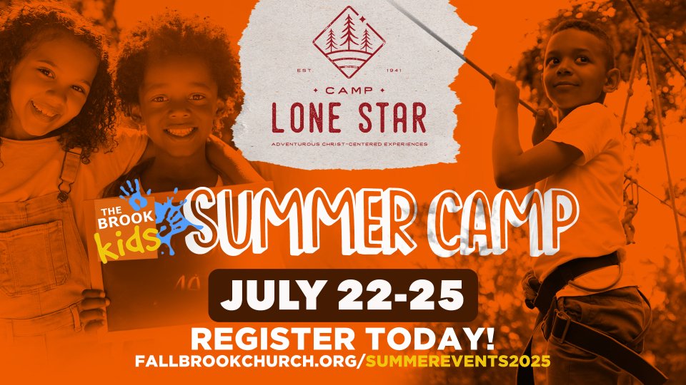 Brook Kids (completed 1st - 5th Grade) will embark on an unforgettable journey at Camp Lone Star (LaGrange, Texas), July 22-25th, 2025. Registration is open now – online and in person! Don't miss out – let the Gift of Camp be the highlight of their summer!