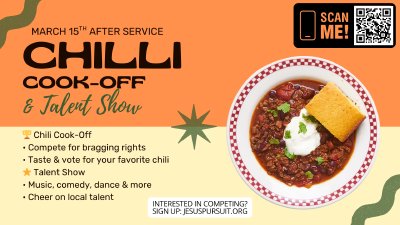 Join us for a fun-filled event that brings great food and amazing talent together! Our Chili Cook-Off & Talent Show is a community celebration where cooks, performers, and spectators all take the spotlight. Sample a variety of homemade chilies, vote for your favorites, and cheer on talented performers as they sing, dance, and entertain. Whether you’re competing, performing, or just coming to enjoy the atmosphere, there’s something for everyone. Expect delicious food, live performances, friendly competition, and plenty of laughs. Bring your friends, bring your family, and join us for a memorable day filled with flavor and creativity. Interested in entering the Chili Cook-Off or Talent Show? Sign-ups are open — we’d love to have you join the fun!