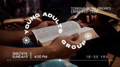 You're invited to our Young Adults Group—a special gathering for ages 18 to 30 somethings where community, faith, and authentic connection come together. Whether you're new to church or looking to deepen your spiritual walk, this is a place where you can feel seen, supported, and encouraged. Join us starting June 8th at 4 PM at The Krider's House [message us for details] for a night of Jesus, real conversations, and meaningful relationships. Come as you are and discover a community where you can grow in faith and friendship. For more info contact us. TONIGHT: After we gather, come and join us as we head over to the church to join 2nd Sunday Worship and Encounter Night! A sweet set aside time to seek Jesus' face and be in His presence, bring your Bibles, journals, art supplies, and let's worship our God together!