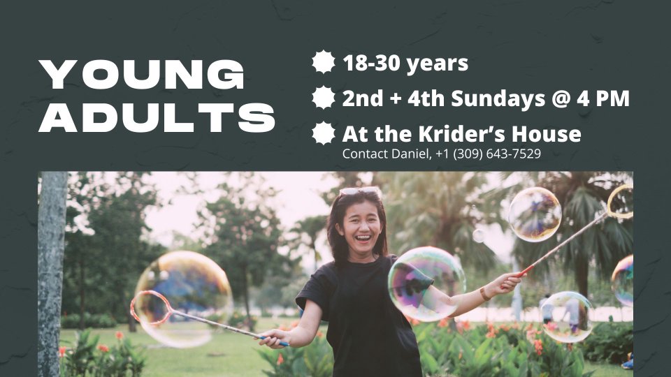You're invited to our Young Adults Group—a special gathering for ages 18 to 30 somethings where community, faith, and authentic connection come together. Whether you're new to church or looking to deepen your spiritual walk, this is a place where you can feel seen, supported, and encouraged. Join us starting June 8th at 4 PM at The Krider's House [message us for details] for a night of Jesus, real conversations, and meaningful relationships.