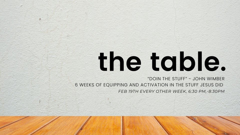 The Table is going to be starting again starting Feb 19th 6:30-8:30 “Doin the Stuff” 6 weeks of equipping and activation in the stuff Jesus did.