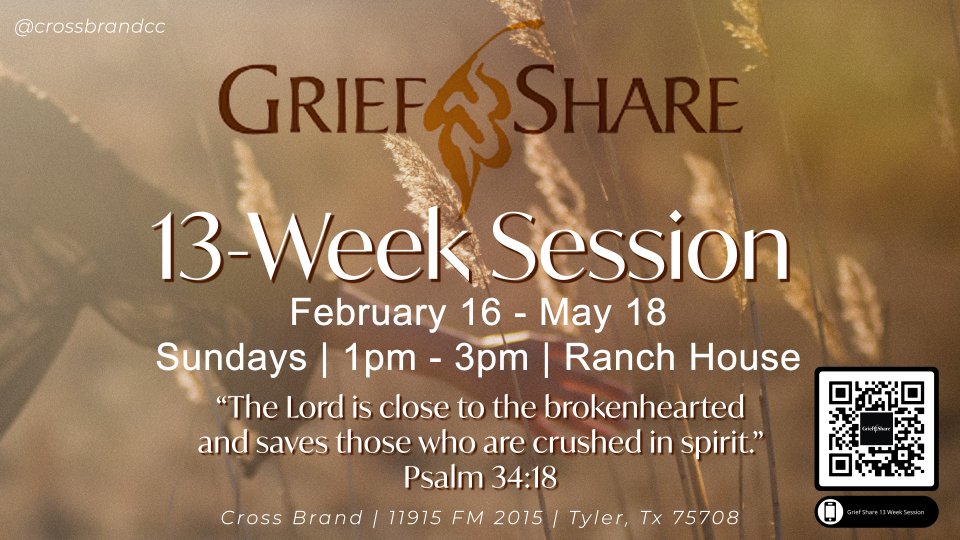 You are not alone! Reaching out for help is a huge first step in healing. Each of our team members has experienced the loss of a loved one and we understand where you are. Our heart's desire is to help you on this grief journey. We are so excited to offer GriefShare 4.0 here at Cross Brand.