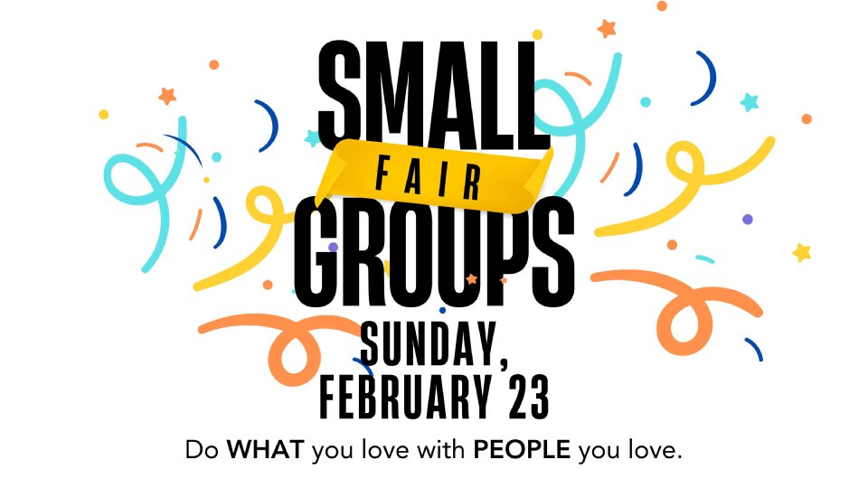 We're excited to announce that our Small Group Fair will be held on Sunday, February 23rd, before and after church. Join us in the foyer to explore all the groups available for the upcoming semester, which runs from March to May.
