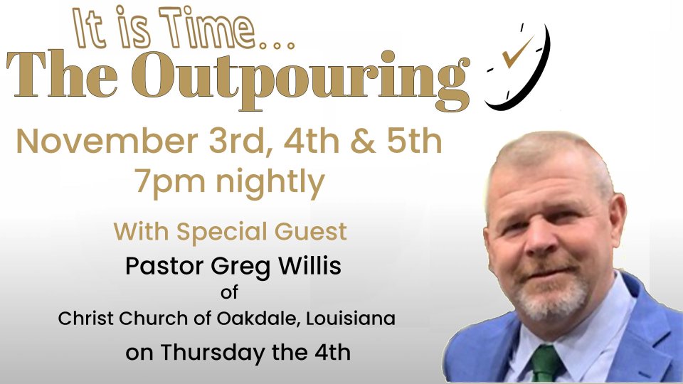 IT’S TIME for FREEDOM, for RESTORATION, for REVIVAL! - The last OUTPOURING services were powerful! God is showing up for HIS PEOPLE! - Make sure you are in the house November 3rd, 4th & 5th for the continuation of revival @Central Triad Church. - Pastor Michael Kelly of Central Triad Church speaks on Wednesday, November 3rd. - Pastor Greg Willis of Christ Church of Oakdale, Louisiana speaks on Thursday, November 4th. - Pastor Alvin Fruga of Presence Theater Church Owasso, Oklahoma speaks on Friday, November 5th. - Invite your friends, family and neighbors. Bring an attitude of EXPECTATION as God’s mercy and grace are made MANIFEST.