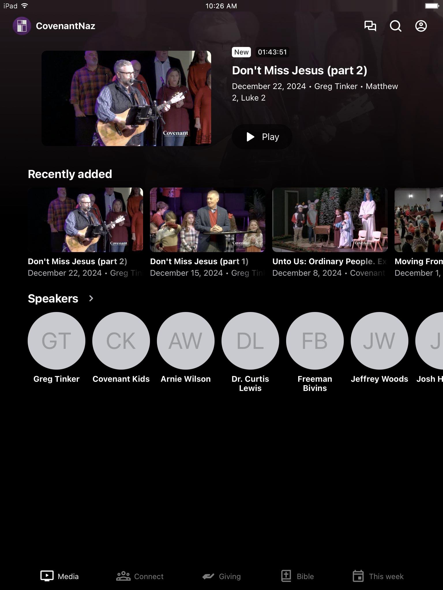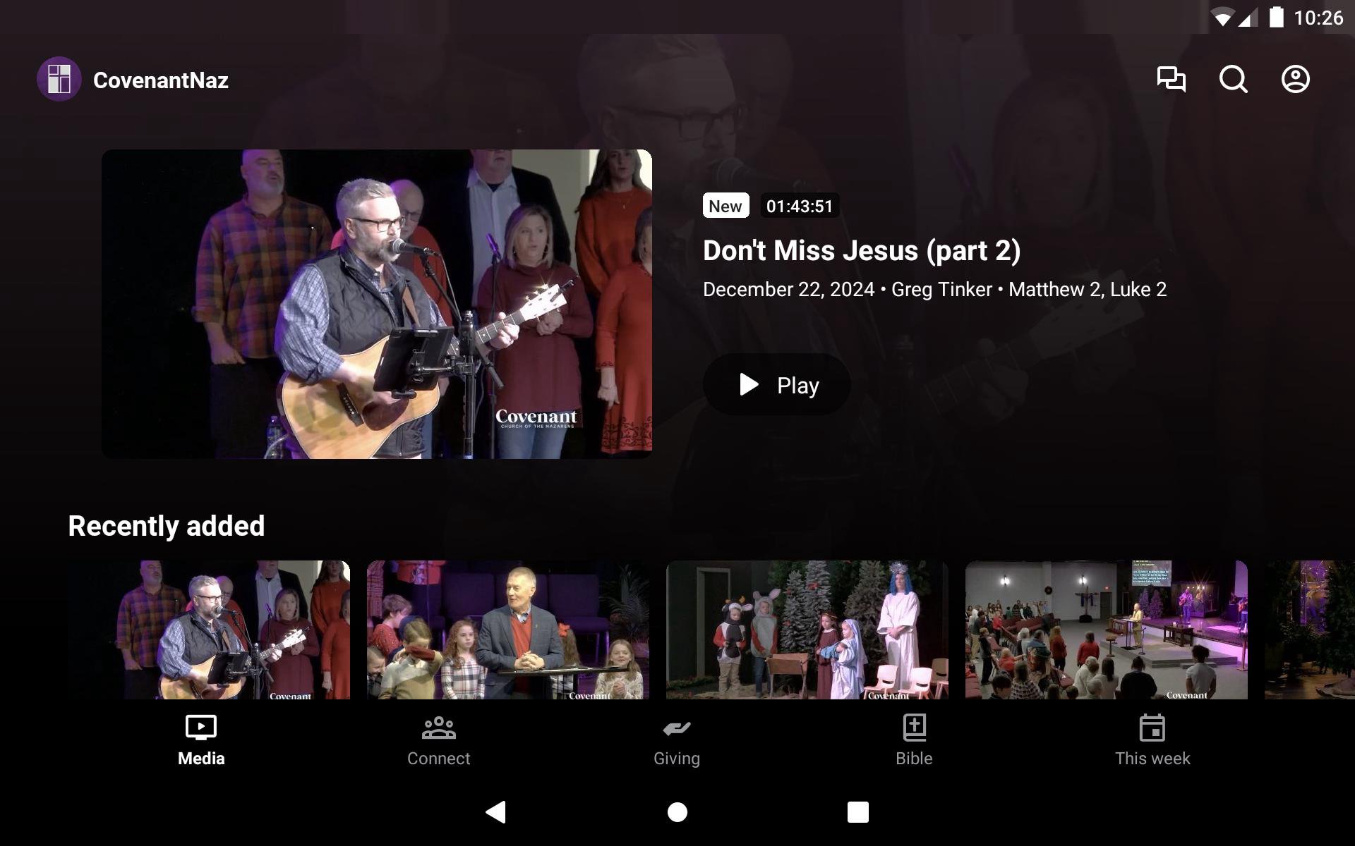 Welcome to the official app of Covenant Church of the Nazarene. With this app, we invite you to: - Join in our worship time with live video and recordings from the latest sermons - Learn about and register for upcoming events - Give & keep track of your online giving - Receive push notifications to stay up-to-date on church happenings - Connect with others using our in app messaging - Read or listen to the Bible For more information about Covenant Church of the Nazarene, visit covenantnaz.com.