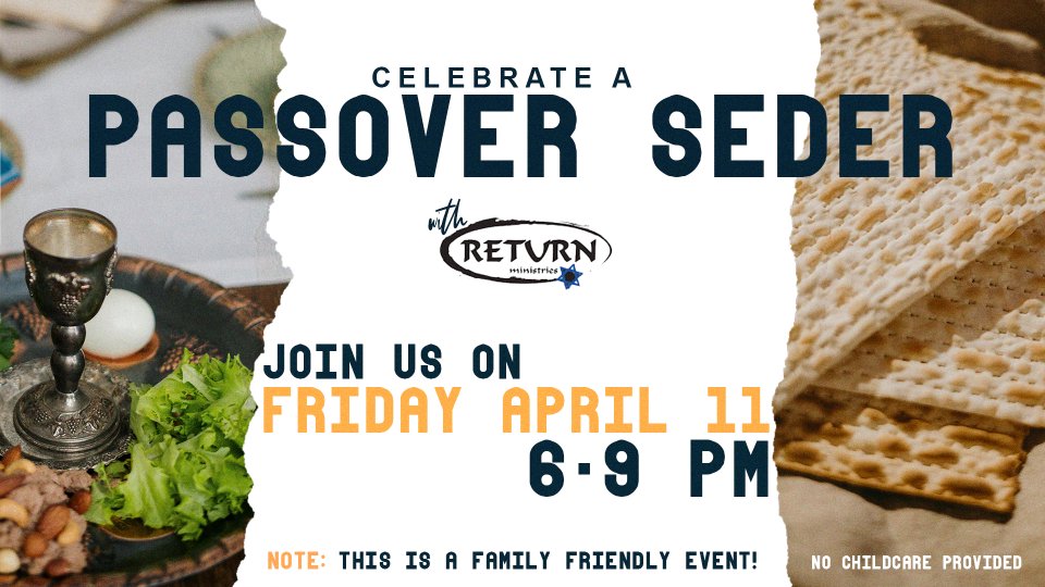 Join us on Friday April 11 from 6-9 pm for a Passover Seder service. We will have memorable interactive teaching of how Jesus fulfills each element of the Passover story. Journey through each step of the Seder (order) similar to how Jesus would have celebrated this feast with His disciples, and is still celebrate by most Jewish families.