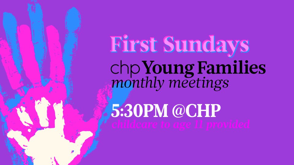Young Families monthly meeting at CHP. Childcare up to age 11 provided.