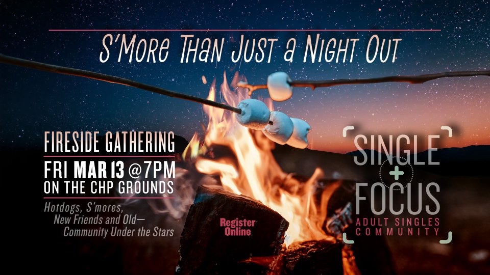 Adult singles, join us on March 13 at 7 PM for a laid-back fireside gathering. We’ll have hot dogs and s’mores ready to roast. Expect a relaxed evening of fellowship and friendship. We’ll meet in the field behind the church’s maintenance building.