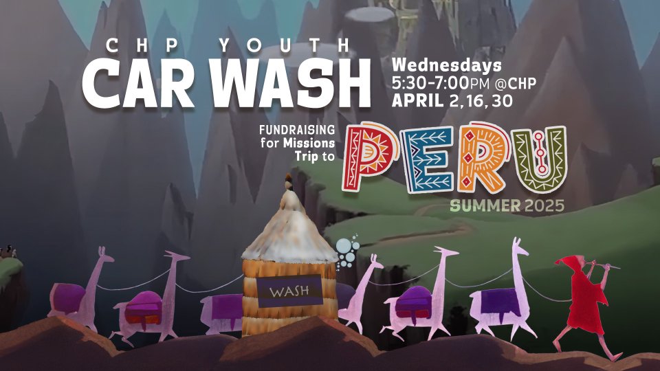 CHP Youth is hosting a car wash to raise funds for their upcoming missions trip to Peru! Bring your vehicle to CHP for a sparkling clean wash and know that your support is helping them reach their fundraising goal.