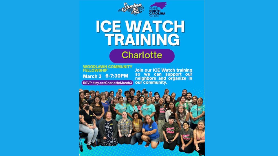 We’re hosting Siembra NC for an Ice Watch Training — join us to learn how to support our neighbors and organize in our community. This hands-on session will cover what Ice Watch volunteers do, best practices for safety and outreach, and ways to get involved locally. Click this link to RSVP