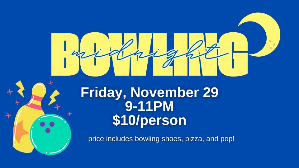 The youth Group is sponsoring a fun bowling event on Friday, November 29th from 9pm to 11pm at Ligonier Lanes. All ages - and we mean all ages- are invited to attend. Bring the whole family-mom, dad, grandparents, you get the idea! 6th graders and younger must have a parent or guardian accompanying them. Cost is $10 and includes shoe rental, pizza and pop! Don’t bowl? Come watch! Sign up on the bulletin board across from the Lounge so that we can prepare properly!