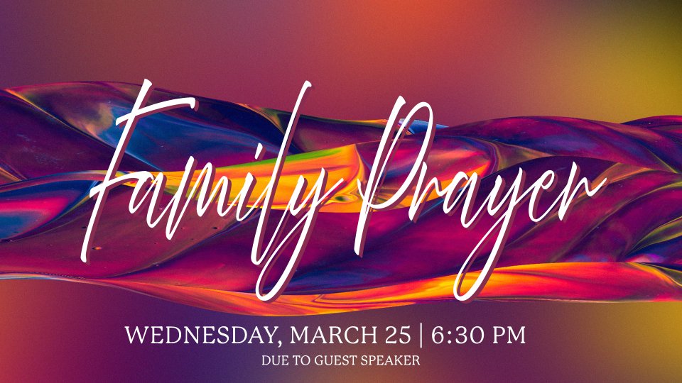 Family Prayer has been moved to Wednesday, March 25 due to our service with Rev. Aaron Wright on Monday, November 23.