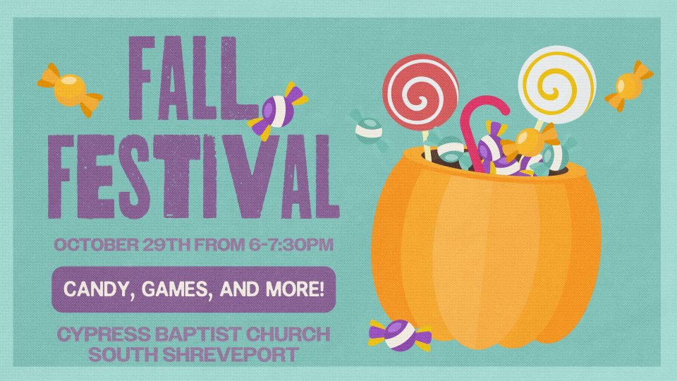 We're excited to invite the community to Cypress Baptist for an evening of fun, food, and fellowship! There will be tons of candy, games, and fun for the whole family.