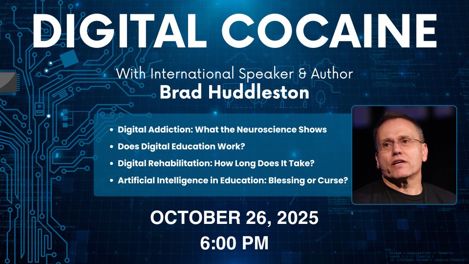Join us for an eye-opening evening with Brad Huddleston, international speaker and author of Digital Cocaine. Brad has spoken worldwide on technology and culture, offering both scientific research and Biblical wisdom for navigating today’s digital world.