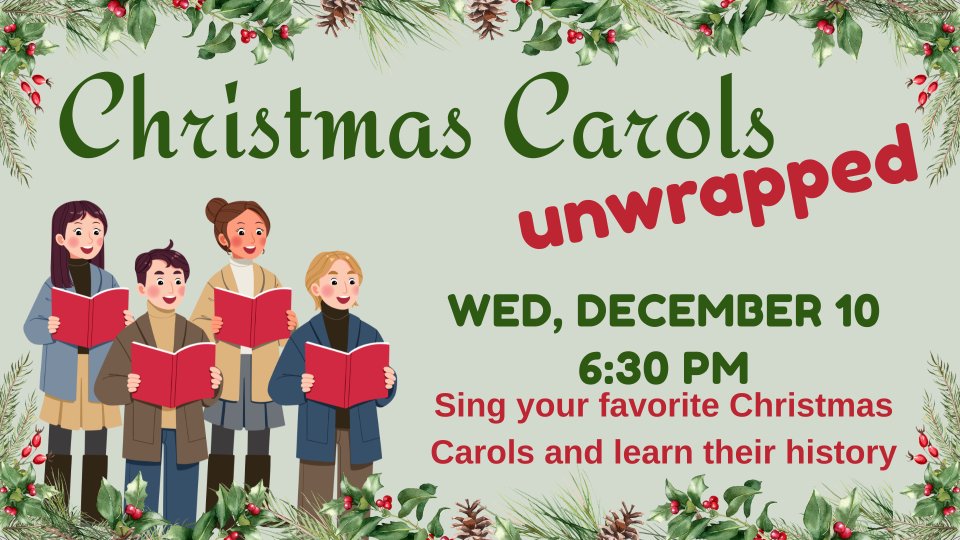 Join us for a warm and joyful evening as we sing our favorite Christmas carols and discover the stories and history behind them. It’s a wonderful opportunity to slow down, celebrate the season, and enjoy meaningful fellowship together.