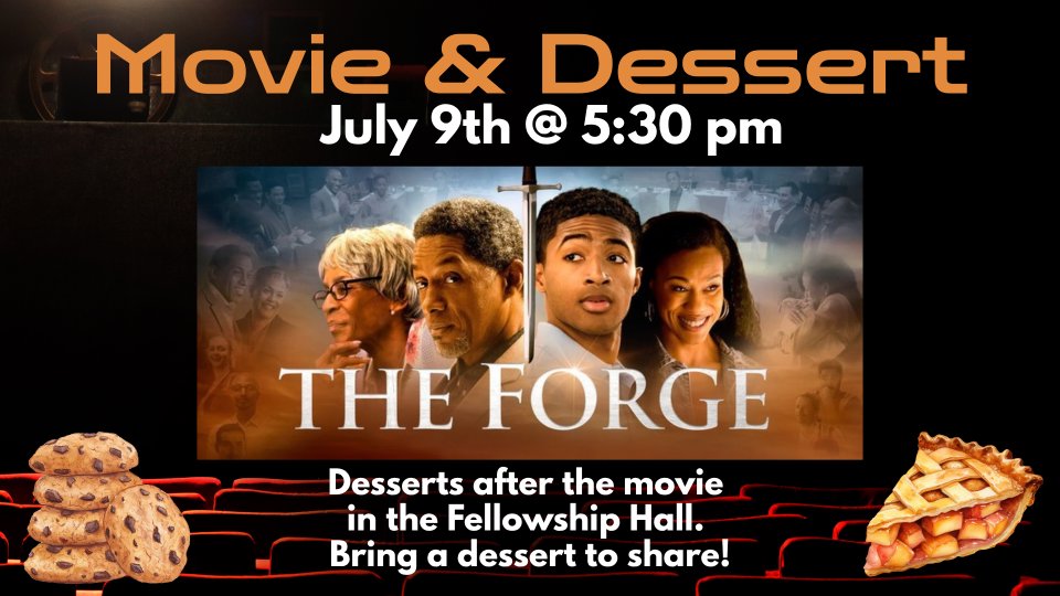 Join us for a special evening of encouragement, connection, and sweet treats! We’ll be watching the inspiring new film The Forge, followed by a time of fellowship and dessert in the Fellowship Hall.