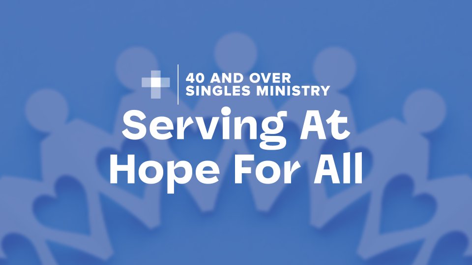 Come join the 40 & Over Singles Ministry in serving those in need in Anne Arundel County! We'll be serving at the Hope for All warehouse on Saturday, April 26 from 9 a.m. to 12 p.m. in whatever they need us to do.