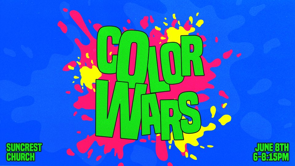 Color Wars is one of the biggest events of the year, and this time we are bringing both Middle School and High School Ministries together for an all-out, high-energy night of competition, connection, and chaos in the best way. On June 8th, the students will battle it out in team games, face wild challenges, and get absolutely covered in color.