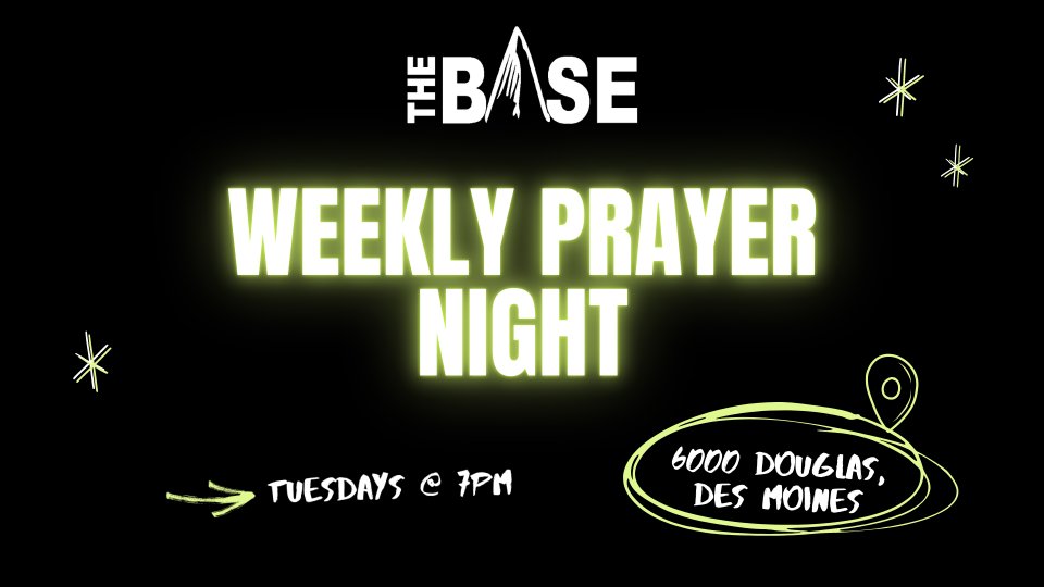 Prayer for the state and each other is held every Tuesday night. Much personal direction and ministry direction has come through these times. A good group of people come to seek God and discuss what they have heard.