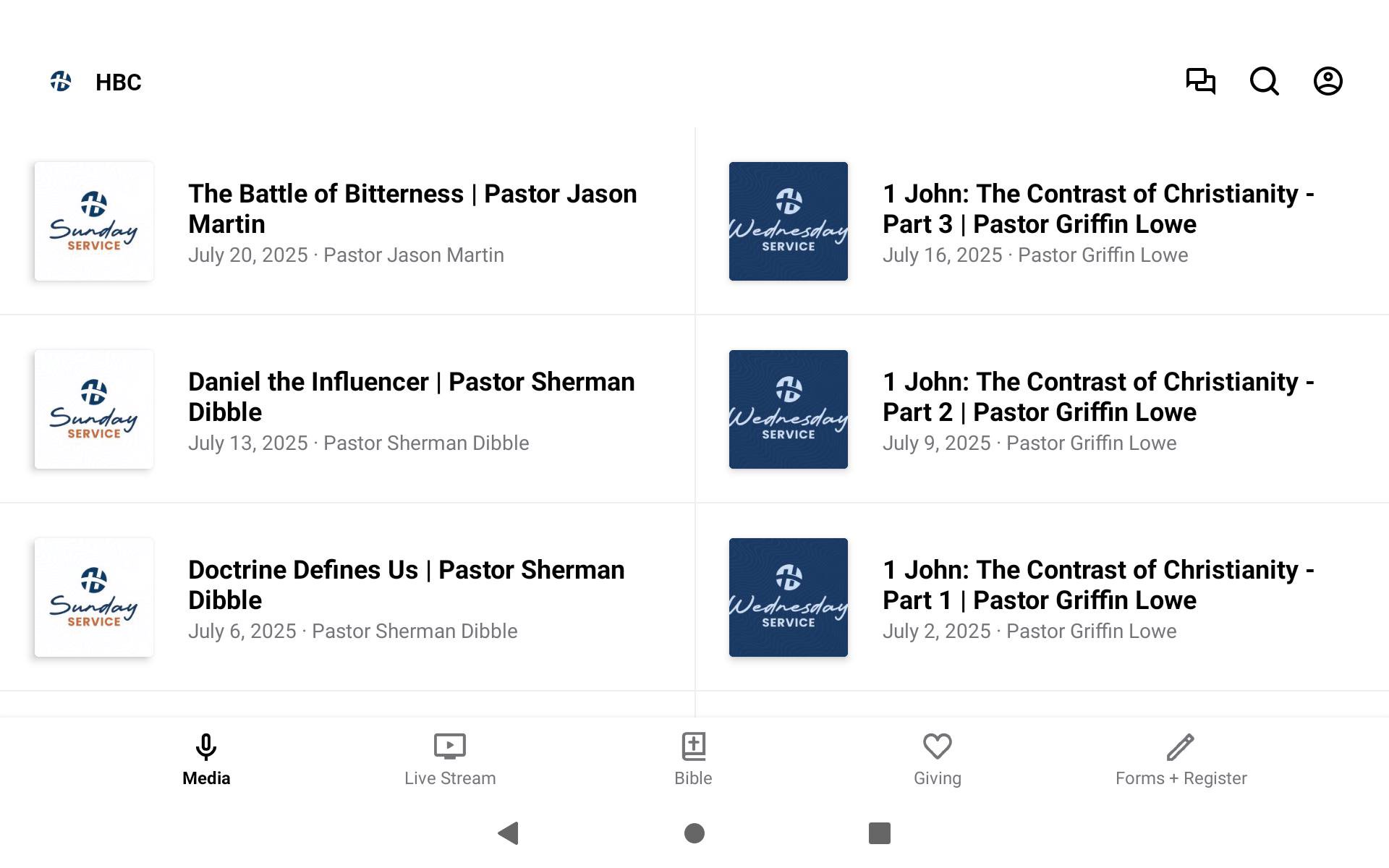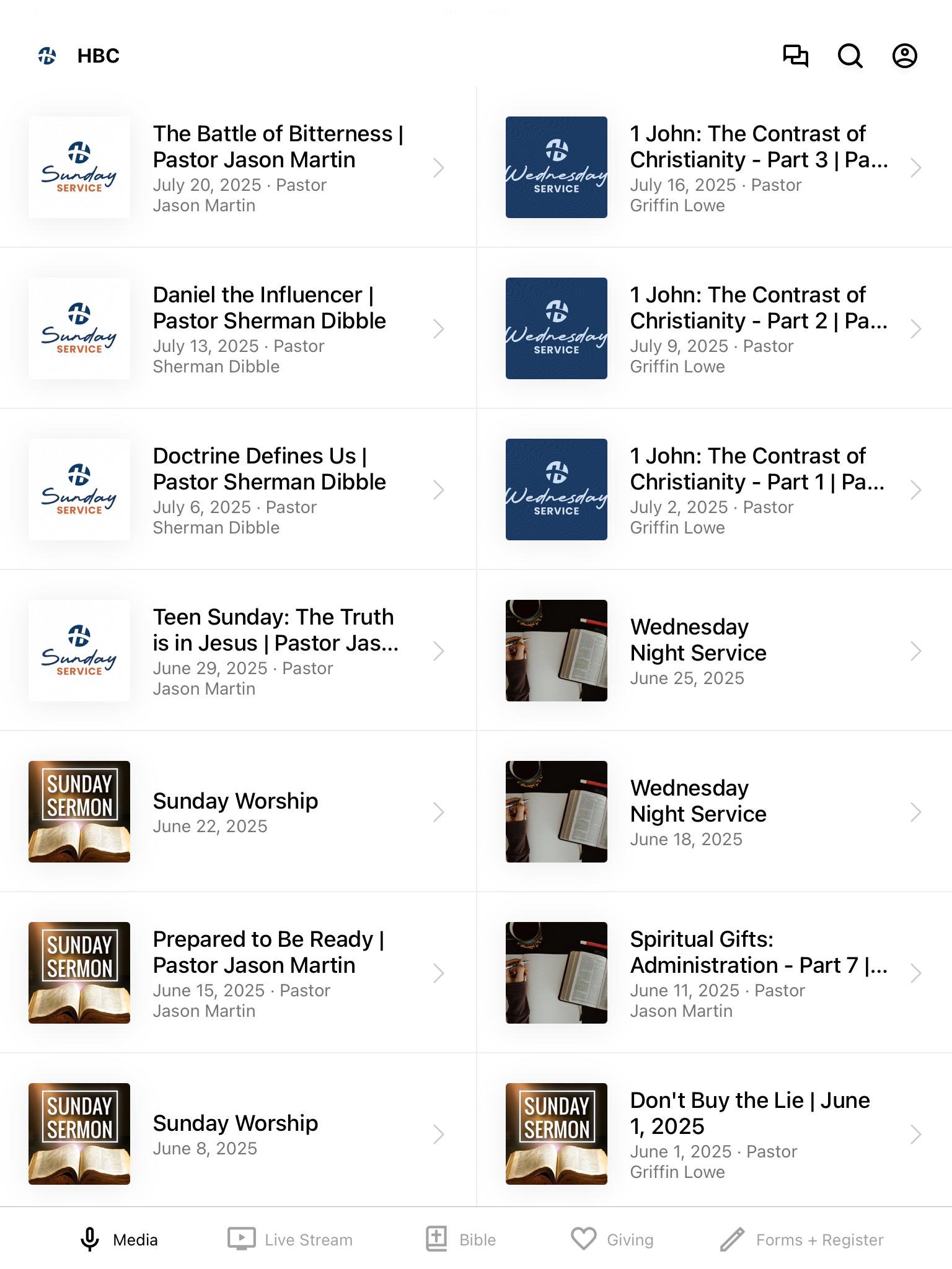 We offer our app to our church family to help you stay connected with Horizon Baptist Church. You can listen to past Sermons and Bible Studies by our pastors. Watch Live Stream Services (when available) as well as access an electronic Bible, support the ministry through our giving page and complete some of our basic informational forms. Thank you for being a part of and supporting Horizon Baptist Church!
