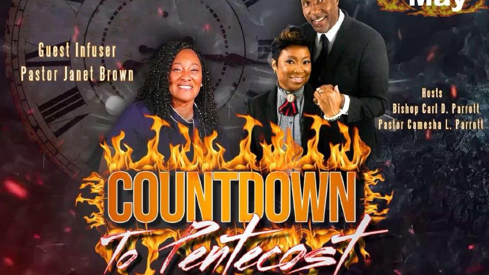 Make plans to join us Tuesday for our Countdown to Pentecost service. Our guest infuser will be Pastor Janet Brown from Andrews, South Carolina. Intercessory Prayer will begin at 7:00PM.
