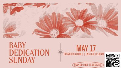 Baby Dedications are a special moment where families commit to raising their children in the love and truth of Jesus, and our church family commits to supporting them in that journey. Parents who would like to dedicate their child during our services on May 17 must attend a mandatory preparation class on May 14 at 6:00 PM in the Conference Room. Please scan the QR code to register for the dedication and class.