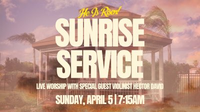 Join us at Heritage Park for a beautiful Sunrise Service as we gather outdoors to worship and celebrate together. As the sun rises, we’ll lift our voices in praise and reflect on the hope and victory we have in Jesus. This special morning will feature live worship led by our team with world-renowned violinist Hector David joining us, creating a powerful and unforgettable worship experience. Bring your family, invite a friend, and come expectant for a meaningful start to your day.