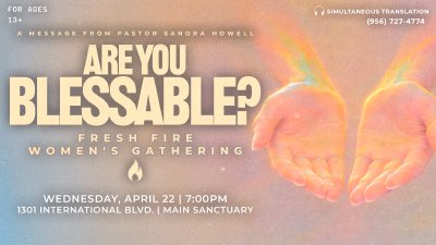 Join us for a powerful Fresh Fire Women’s Gathering with a special message from Pastor Sandra Howell titled “Are You Blessable?”. This evening is designed to encourage, challenge, and inspire women to position their hearts to receive what God desires to pour out. Come expecting a meaningful time of worship, the Word, and connection with other women as we gather in faith together.