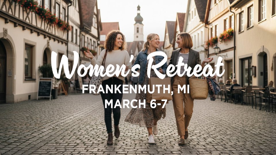 Recharge, connect, and grow at our annual Women's Retreat to Frankenmuth! Join us March 6-7 for fellowship, worship, Bible Study, and shopping! Cost includes overnight accommodation and 3 meals.