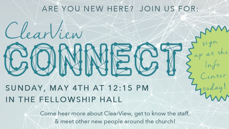 Join us for lunch at our next ClearView Connect on Sunday, May 4th after the 2nd service.