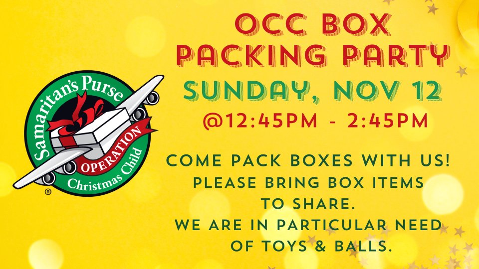 Come pack boxes with us! Please bring box items to share. We are in particular need of toys & balls.