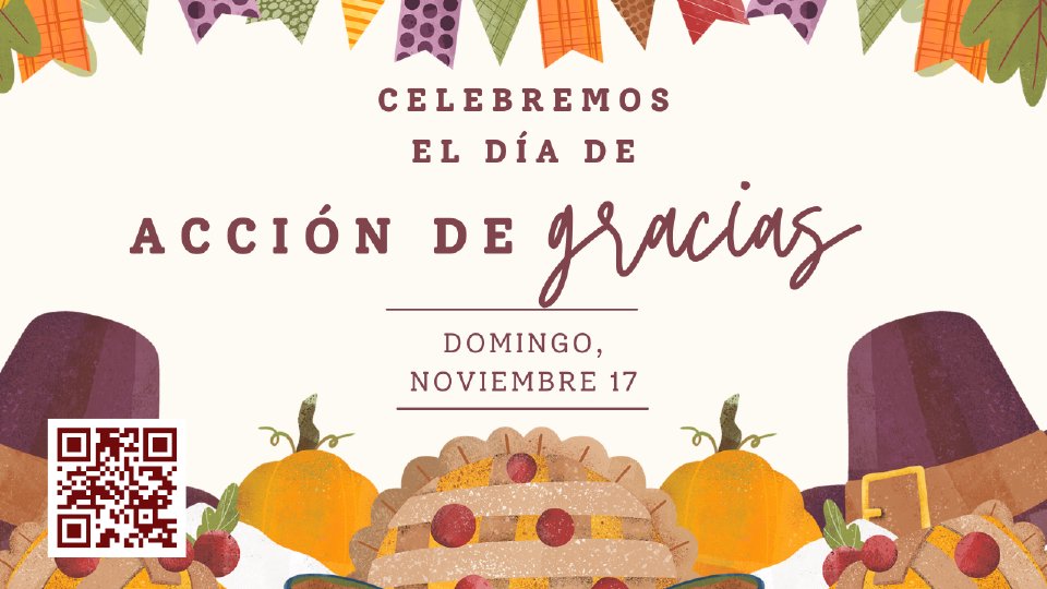 Te invitamos al servicio unido de las 11am, con el almuerzo comenzando a las 12:30pm al frente de la iglesia.