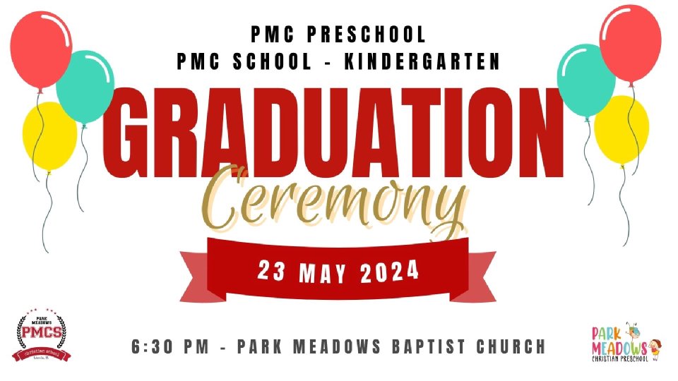 Our Preschool and Kindergarten graduation will be held on May 23rd at Park Meadows Baptist Church. A reception will follow at the Preschool building.