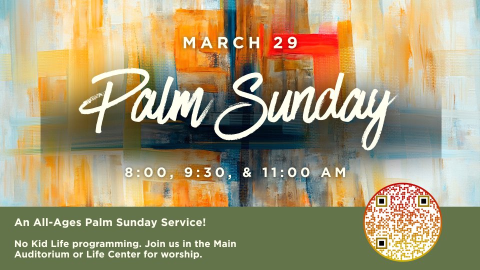 On March 29, 2026, we will have a special set of services, as Palm Sunday and our All Ages Sunday service combine into one holiday service. Join us for a special service as we begin Holy Week and look forward to Easter.